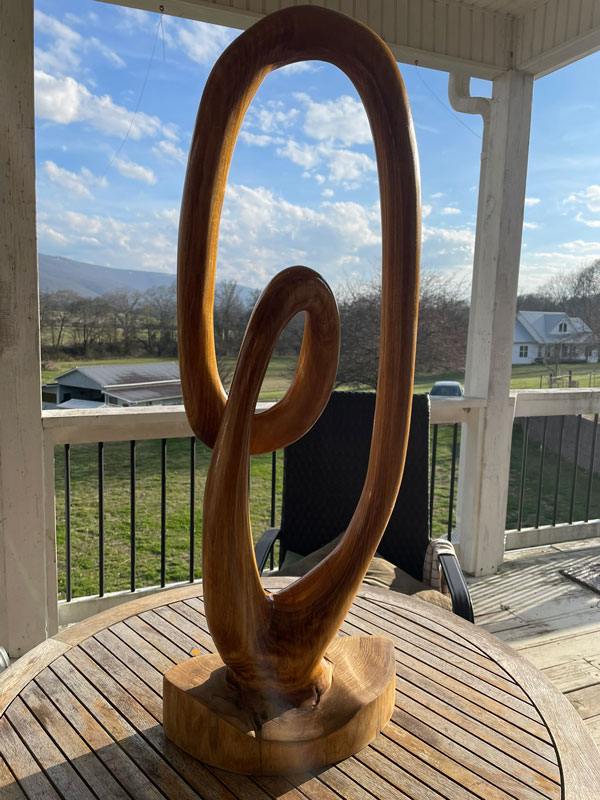 At the reception visitors can meet the artists and talk to them about their work. Every artist has a story, and beside each work will be biographic information. Visitors to the show can read about the artist, and how he or she became an artist, as well as see what the artist has produced. What is best about the show is it celebrates local artists and encourages visitors to create art of their own. Sometimes there are big surprises for visitors. This year one work which may surprise visitors will be Steve Pickett’s Ghost Rider. Completely different from Ghost Rider, but just as compelling will be Larry Chapman’s beautiful wooden sculpture carved from Camphor Laurel. Larry calls it Gathering